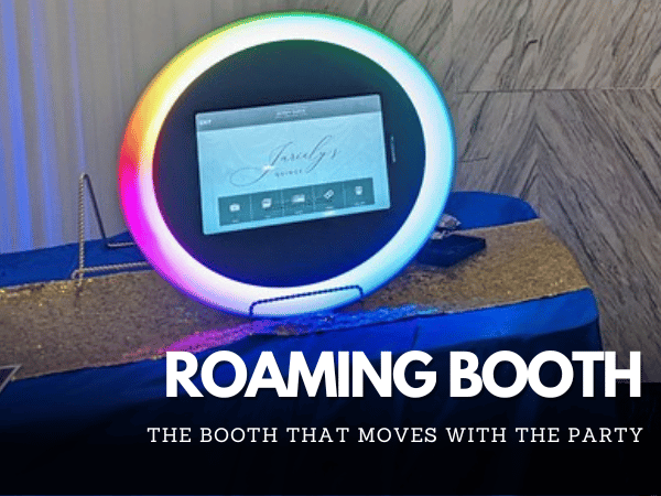 The photo booth that moves with the party! Our fun and energetic photo booth staff will walk the party from outside, to the reception room making memories everywhere we go.